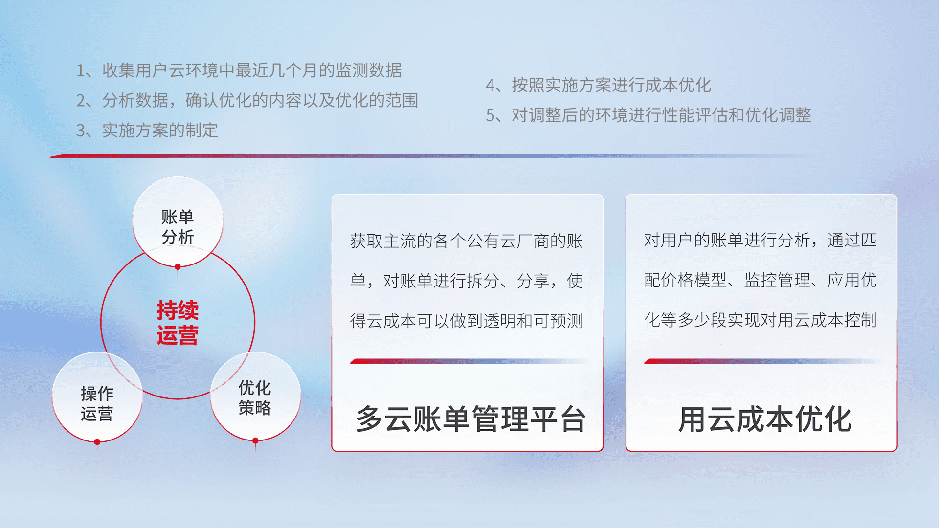 监控业务系统资源开销,,,,对资源的消耗精确计量,,,,实现费用的透明化管理,,不断提升资源使用率,,调整资源购买方式,,,降低资源费用成本,,用云成本可预测、、、、用云费用可优化,,,云资源配额有据可依。。。